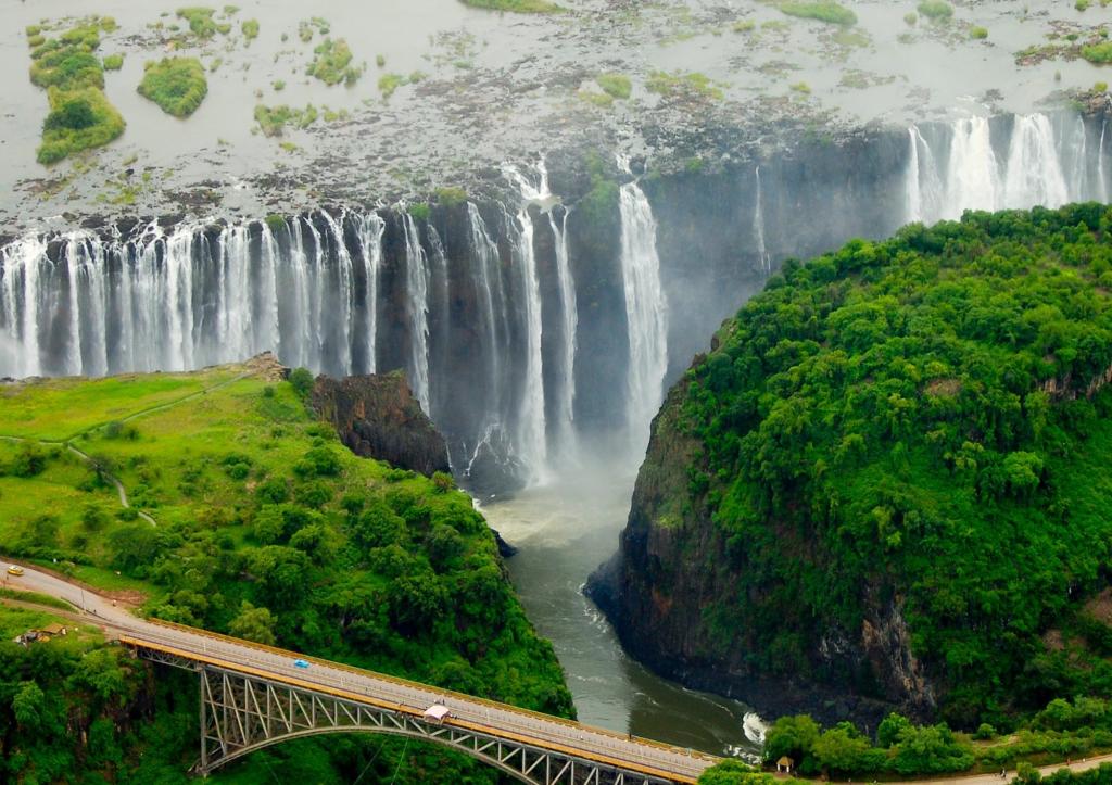 1. Mosi-oa-Tunya/Victoria Falls is located there. It is the world’s greatest sheet of falling water. The waterfall stands at an altitude of about 108 m (355 feet) above mean sea level and spans to about 1708 m wide (5,604 feet) with an average depth of 100 m and the deepest point being 108 m. Sprays from this giant waterfall can be seen from a distance of 30 km from the Lusaka road, Zambia and 50 km from Bulawayo road, Zimbabwe.